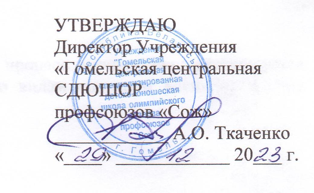 Учреждение «Гомельская центральная специализированная детско-юношеская школа олимпийского резерва профсоюзов «Сож» комплектуется в установленном порядке: